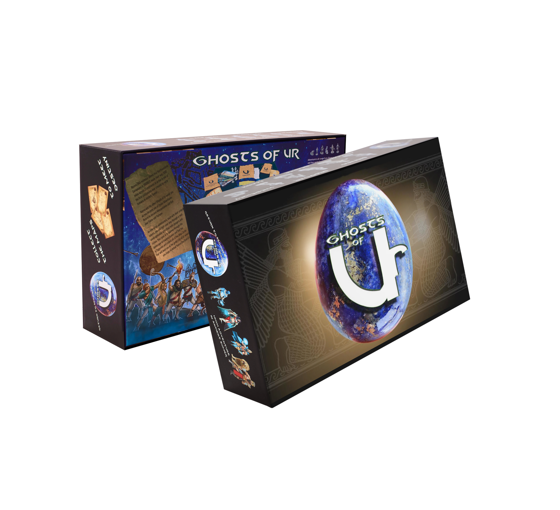 Prepare yourself for a high-stakes adventure board game that combines strategic gameplay with thrilling exploration. Designed for 2-6 players, GHOSTS OF UR offers an immersive experience where every decision counts and every move can shape your destiny. With the possibility of a 7th player through the Gala Master Variant, the game accommodates larger groups, allowing you to embark on this thrilling journey with a diverse and dynamic party of adventurers. The game's playtime typically spans around 90 minutes, providing ample time to delve into the intricate strategies and tactics that define your quest. However, don't be surprised if the game takes an unexpected turn and speeds up, leading to intense and exhilarating moments that can conclude the adventure in as little as 15 minutes. The variable playtime ensures that every session is filled with excitement and keeps you on the edge of your seat. The heart of the game lies in the thrilling adventure that unfolds with each playthrough. As you navigate the ancient world of Sumer, every choice you make, every interaction with other players, and every calculated risk has the potential to propel you towards victory or lead to unexpected consequences. The adventure is the essence of the game, drawing you in and immersing you in a world of discovery, challenges, and triumphs. Get ready to embark on a journey where strategic thinking, cunning tactics, and calculated risks pave the way to victory. Explore the vast possibilities, adapt to the ever-changing circumstances, and experience the exhilaration of a game that offers an epic adventure in just a matter of minutes. Brace yourself for the ultimate thrill—it's all in the adventure!